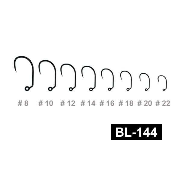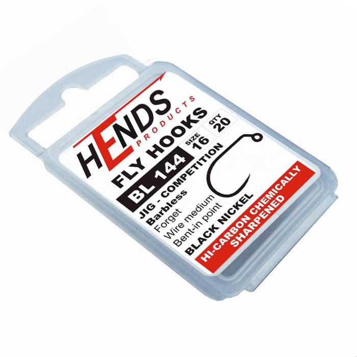 ll modello "Hends BL144" è lavorato tecnicamente e industrialmente ad un alto standard possibile fabbricare. Questi ami da jig senza ardiglione sono costruiti con acciaio al carbonio di altissima qualità con punte affiliate lavorati chimicamente. È caratterizzato dalla particolare piega dell’occhiello a 45 gradi che rispetto al gambo e in asse con lo stesso, così è adatto particolarmente per mosche pesanti e ninfe jig. Occhielli perfettamente chiusi e senza spigoli.