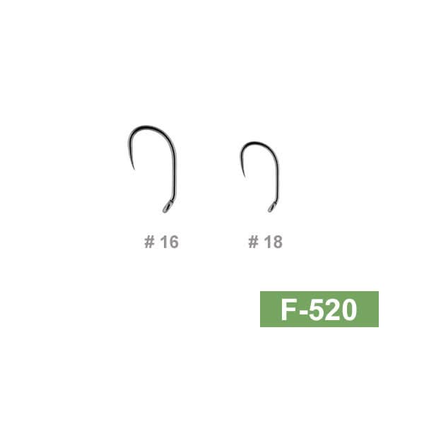 Il modello Fasna F520 ha un con gap largo e gambo corto, con forma similare al F500 per blob ma con un filo più sottile, rendendolo ideale per la costruzione di ninfe e mosche perdigones. Le punte di tutti ami fasna sono senza ardiglione e stati lavorati chimicamente per penetrare perfettamente nella bocca del pesce.