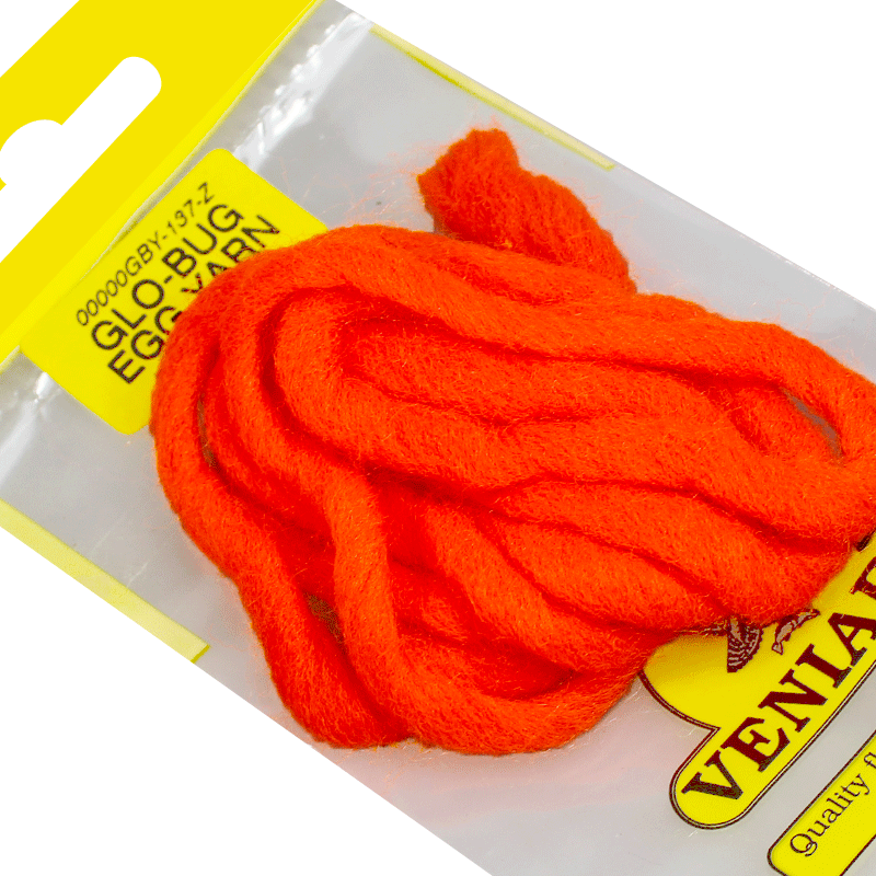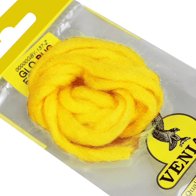 Materiale soffice e voluminoso per la costruzione dei famosi ed estremamente accattivanti Glo Bug's. Questo imita la segale di pesce, che viene assunta da salmoni, steelhead e altri salmonidi durante il loro viaggio nei fiumi. I colori fluo yellow e fluo peach sono eccellenti anche come imitazioni di boilies per la pesca a mosca su carpe.