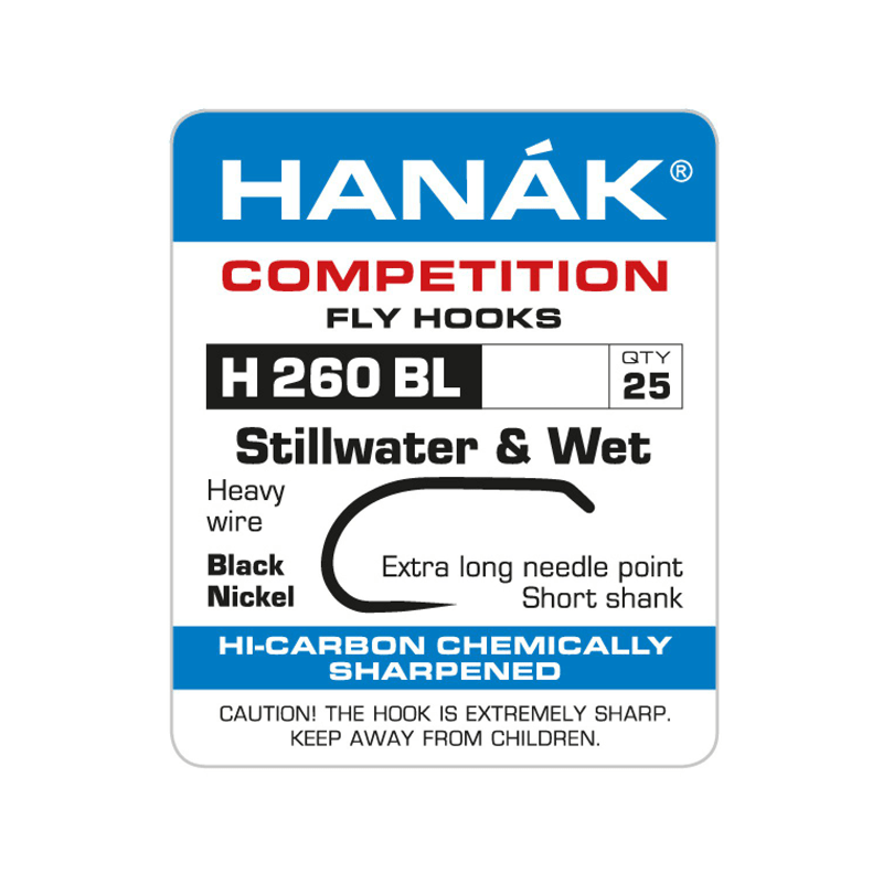 Come tutti ami Hanak hanno occhielli chiusi perfettamente, senza spigoli. Testati con grande successo vengono usati da costruttori di tutto il mondo. Modello H260BL è disegnato per la costruzione di mosche da lago (stillwater) e sommerse.