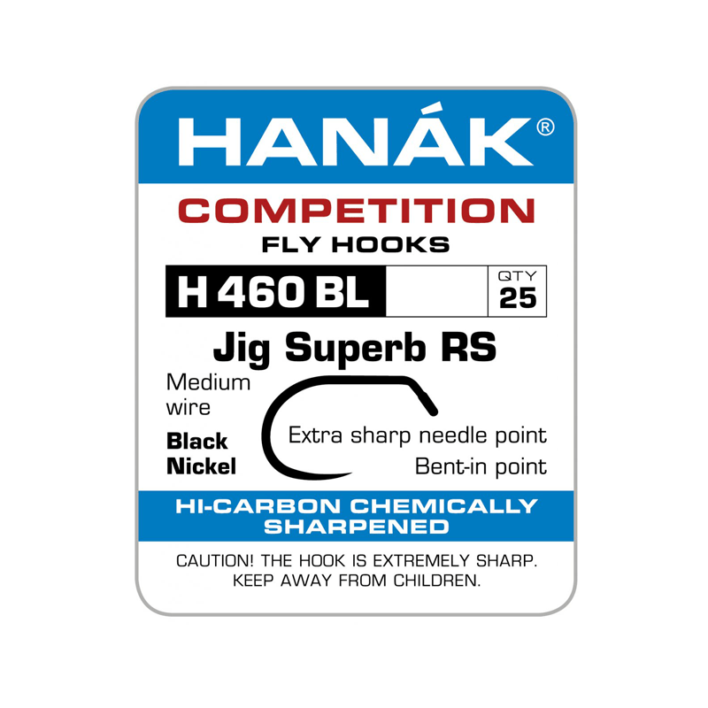 Come tutti ami Hanak hanno occhielli chiusi perfettamente, senza spigoli. Testati con grande successo vengono usati da costruttori di tutto il mondo. Modello H460BL è disegnato per la costruzione di mosche jig e per utilizzare la massima dimensione/peso della perlina sull’amo più piccolo possibile. Per esempio su amo misura #20 è possibile mettere una perline da 3,8mm.