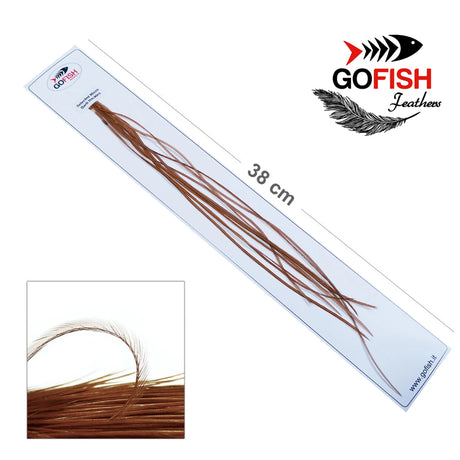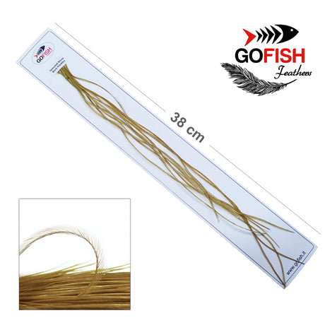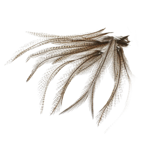 Ein weiteres Highlight ist der farbenprächtige Goldfasanenbalg, der eine Vielzahl an Federn – von Hals- und Kammfedern bis hin zu Brust- und Sattelfedern – umfasst. Diese Federn sind vielseitig einsetzbar und verleihen Ihren Fliegen eine besondere Note.
