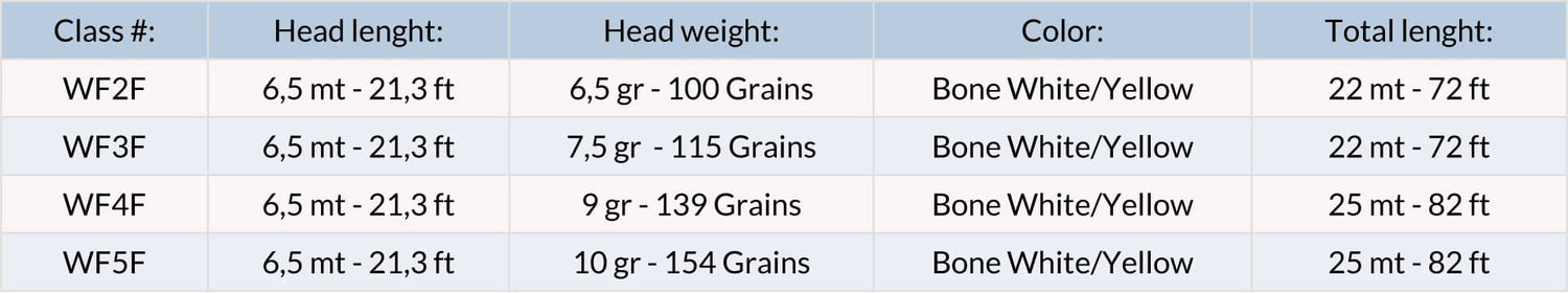Der Kopf ist nur 6,5 Meter lang und so konzipiert, dass er je nach Wurfstil auf Entfernungen von der Schuhspitze bis zu 15-20 Metern gut funktioniert. Der Hauptteil des Kopfes besteht aus einem durchgehenden Front Taper, der in einem kurzen Back Taper endet. Diese dreieckige Verjüngung sorgt für eine Schnur, die sich sehr leicht aus dem Wasser heben lässt und sich perfekt für Würfe aus dem Wasser wie Roll- und Switch/Spey-Würfe eignet.