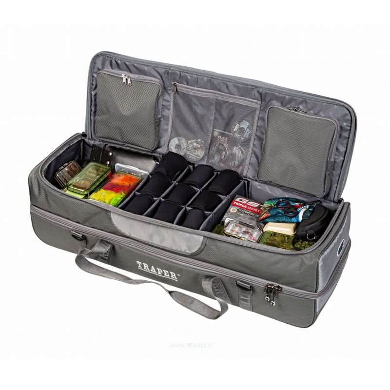 This professional bag is purposed for carrying all the most important fly fisherman's tackle. Perfect for packing in the car unbelievably stable. When took out you have easy access to all items. Lower part divided into compartments there is space for eight rod tubes.
