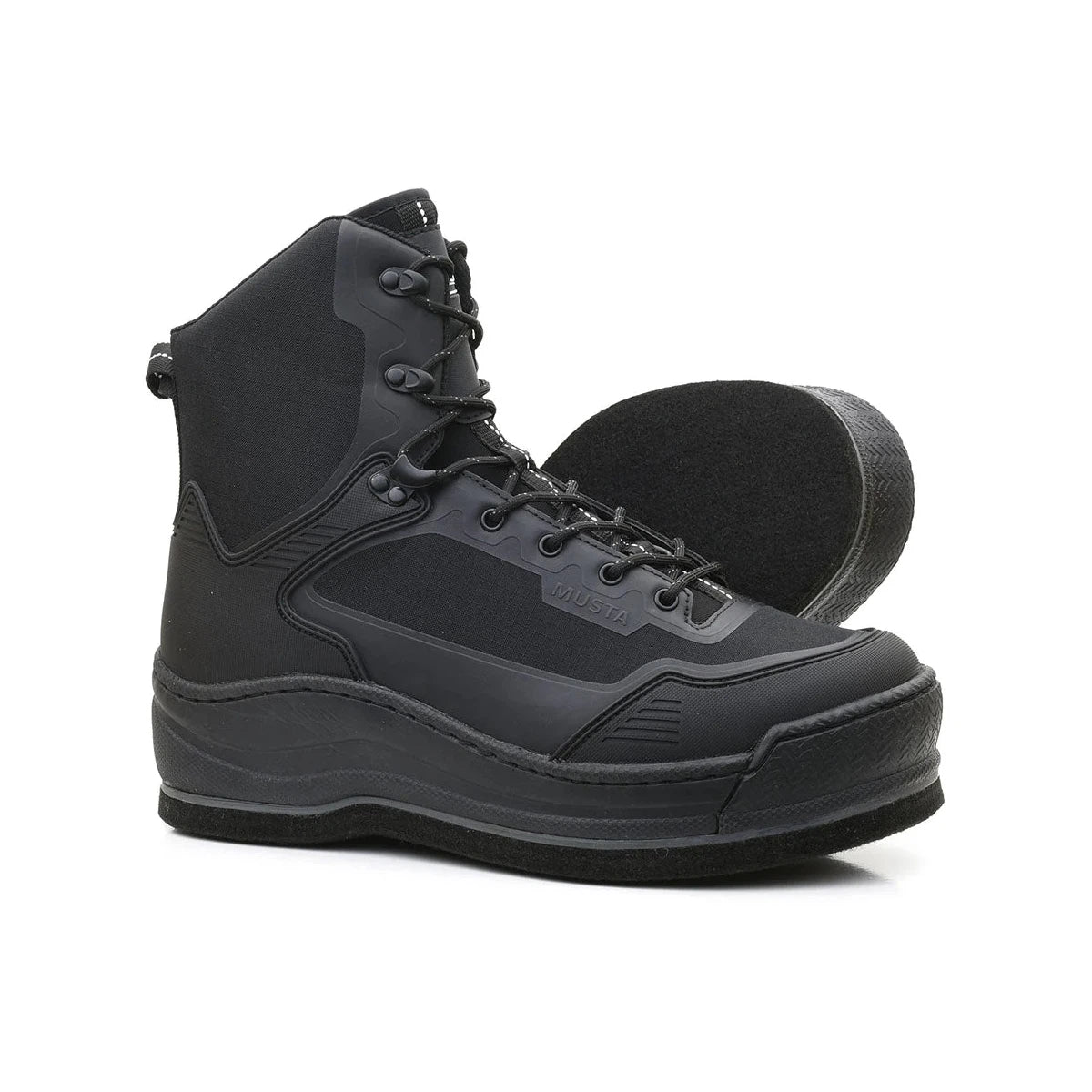 Musta is the most popular wading shoe model since his start. It is a modern, lightweight wading shoe with TPU re-enforced ballistic polyester upper. The TPU print in designed areas gives good wear resistance without making the shoe too heavy and bulky.