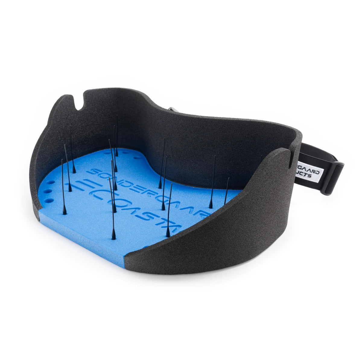 The baskets are made of high-density, closed-cell foam, which was selected for its low water absorption, buoyancy, and structural integrity. Built-in drainage holes prevent water accumulation and keep the basket light and functional even in surf or rain. They also feature a molded rod rest for hands-free rigging or fly changing.